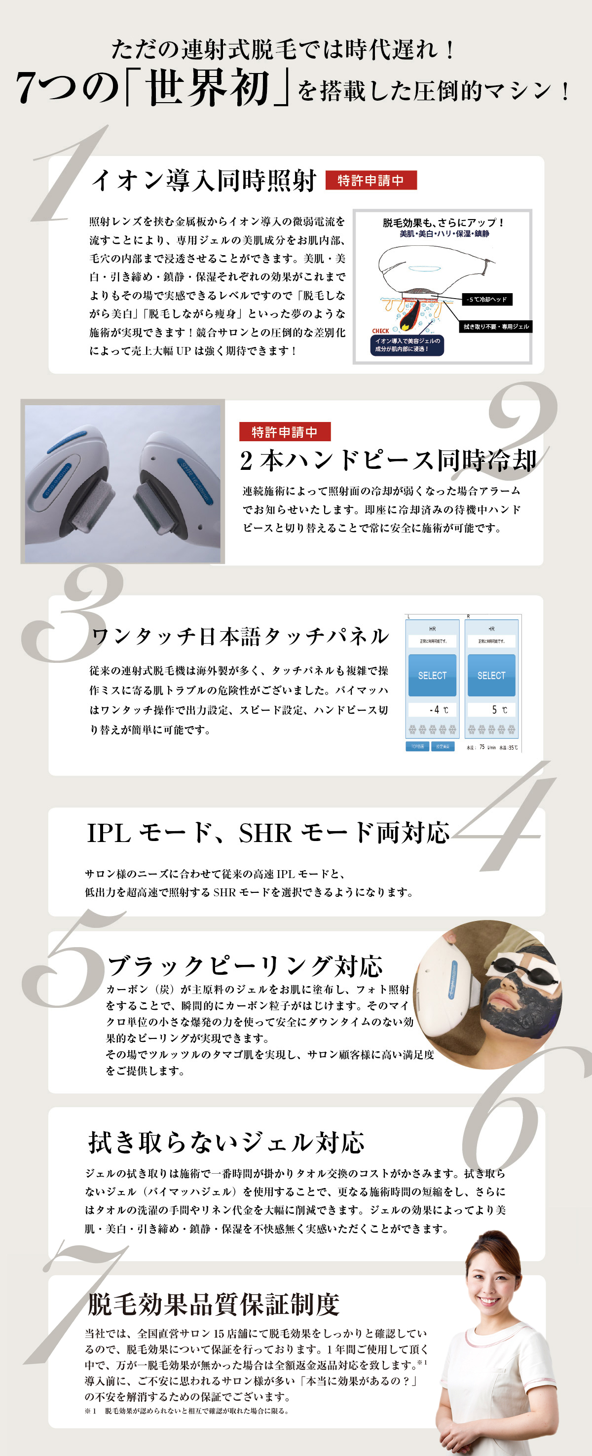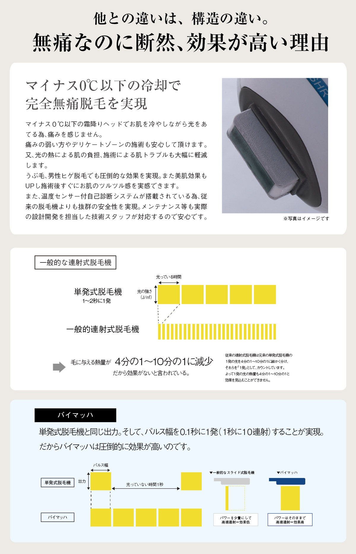最新のハイブリット脱毛機で高速脱毛。6か月で脱毛完了