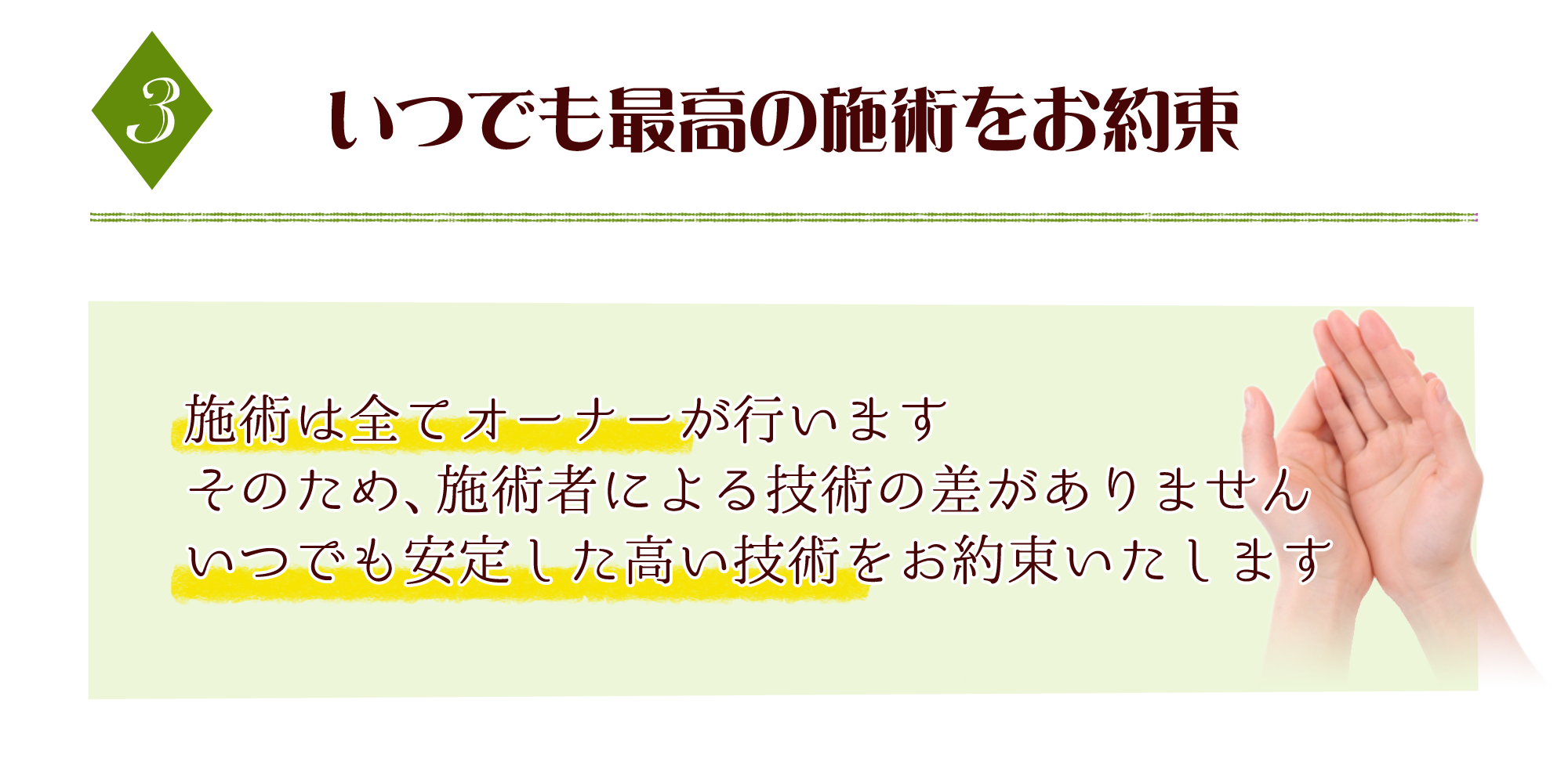 完全予約制となっておりますので、お時間の限りたっぷりと施術させていただきます。